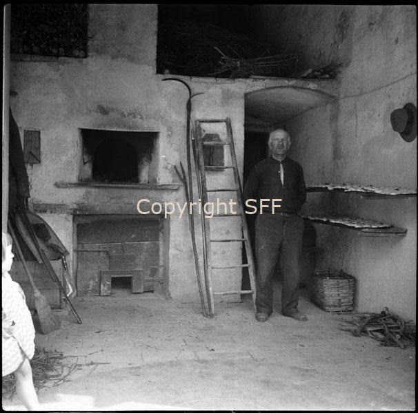 Forno in muratura; a fianco: spazzaforno e tirabrace e ritratto dell'informatore