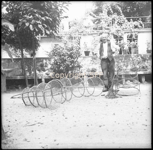Uomo in posa accanto ad attrezzi da pesca