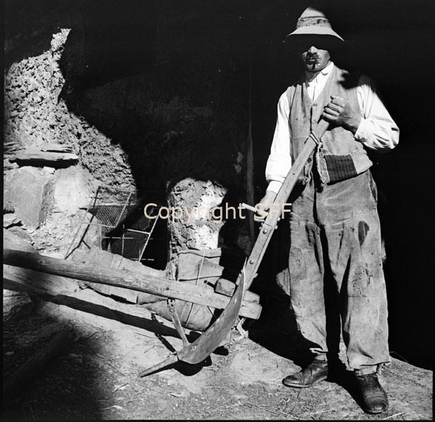 Uomo in posa con aratro: ala a destra