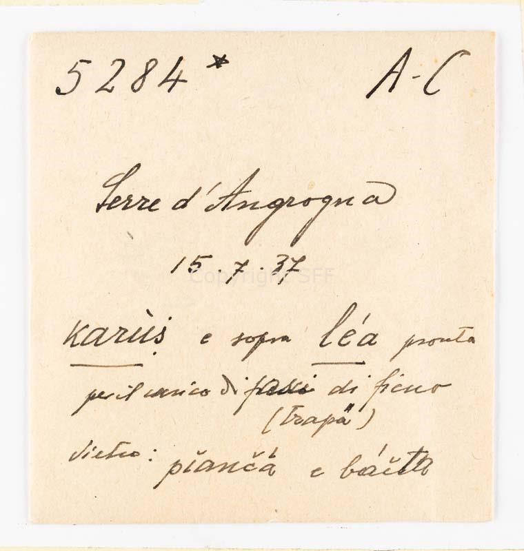 - Ricognizione per la compilazione dell'Atlante Linguistico Italiano