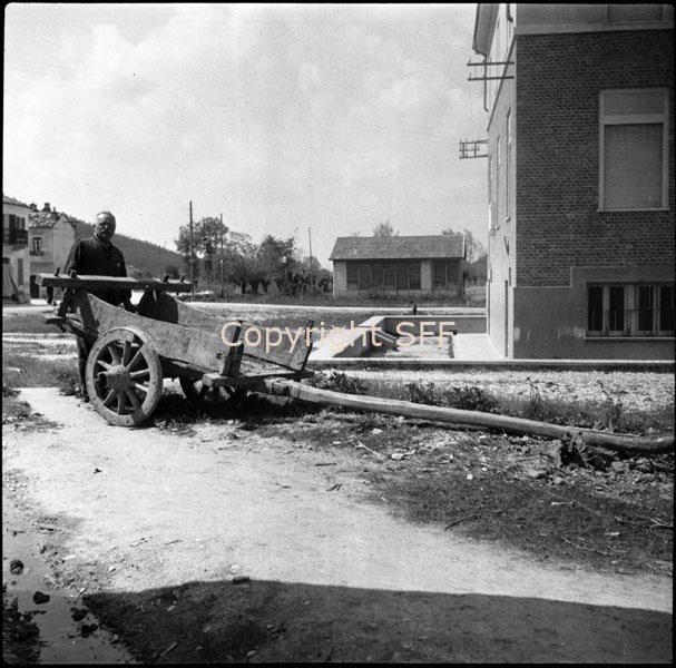Uomo in posa dietro un barroccio