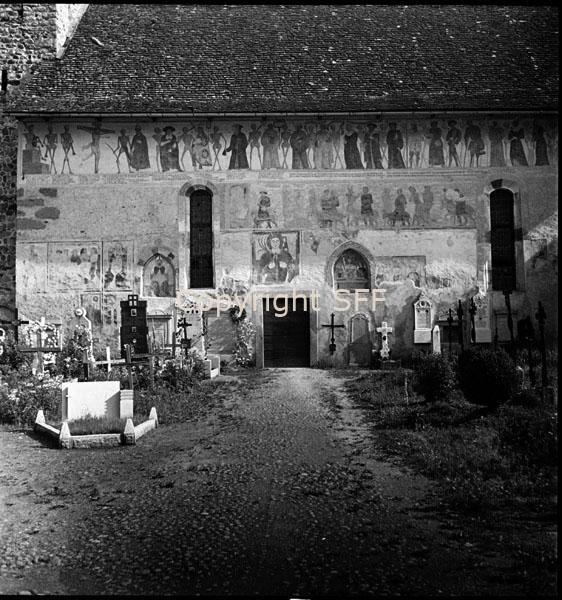 Veduta del camposanto di Pinzolo con la chiesa di San Vigilio: la Danza macabra