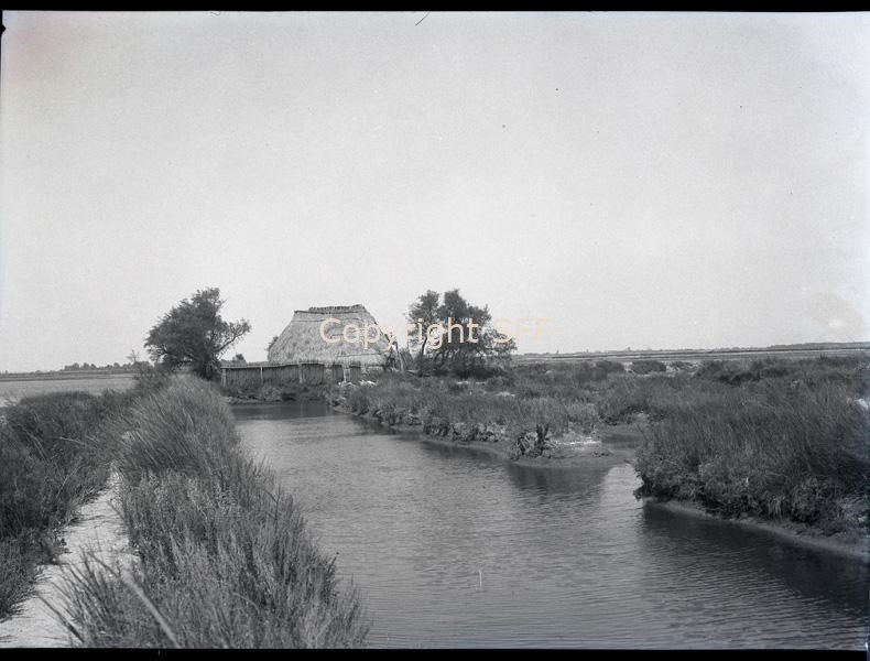 Veduta della laguna di Grado e di un casone