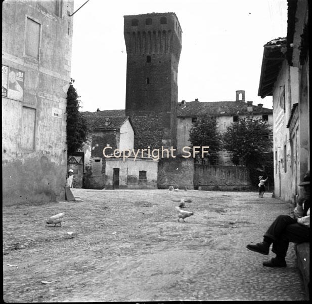 - Veduta della piazza del paese; sullo sfondo la torre antica del XV secolo