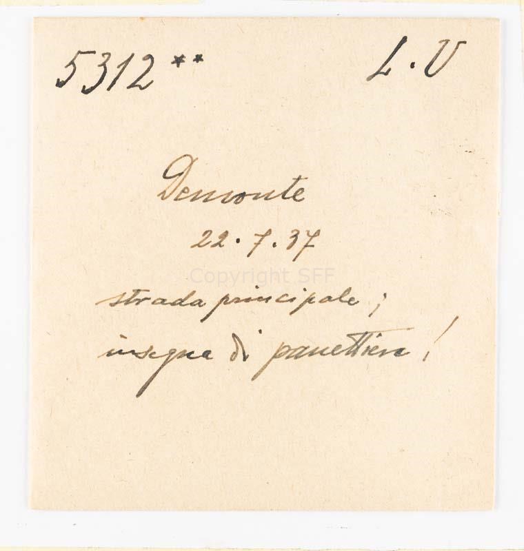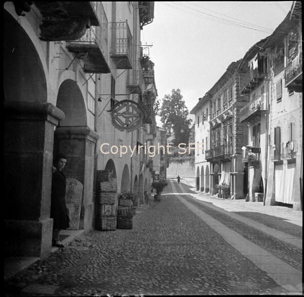 Veduta di Demonte: l'insegna del fornaio sulla strada principale