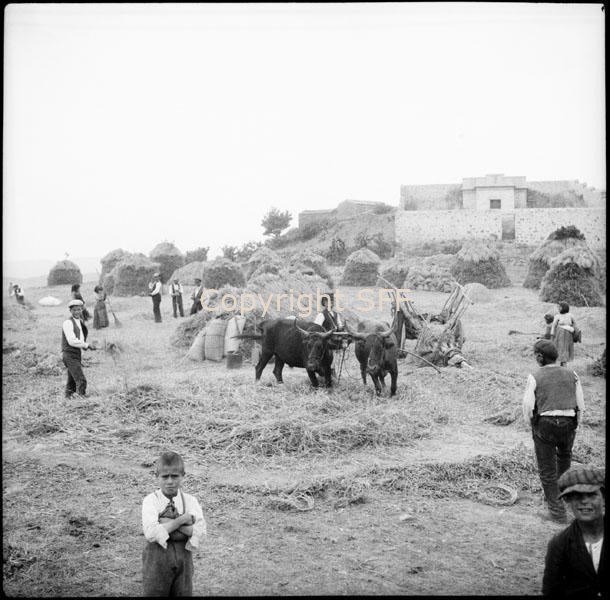 - Ripresa dell'aia mentre si svolgono lavori agricoli come la trebbiatura, la paleggiatura, la spulatura ecc.