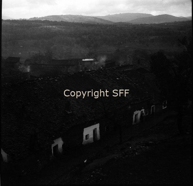 - Case del paese in muratura con copertura di scandole (assicella di legno usata talvolta al posto delle tegole per ricoprire i tetti specialmente in montagna)