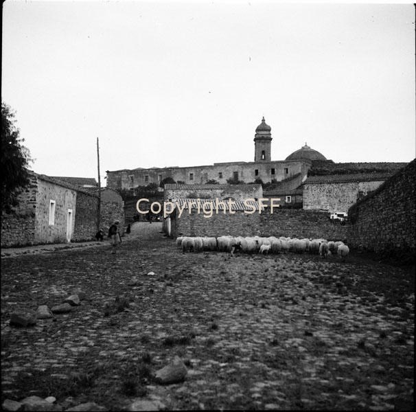 - Veduta di parte del paese e gregge di pecore
