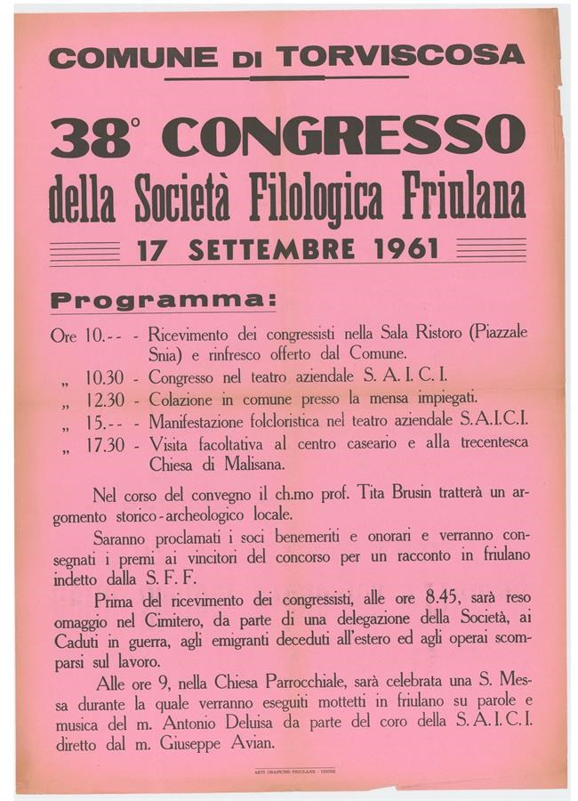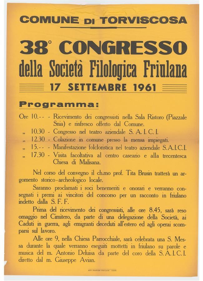 Programma del Congresso della Società Filologica Friulana tenutosi a Treppo Carnico.