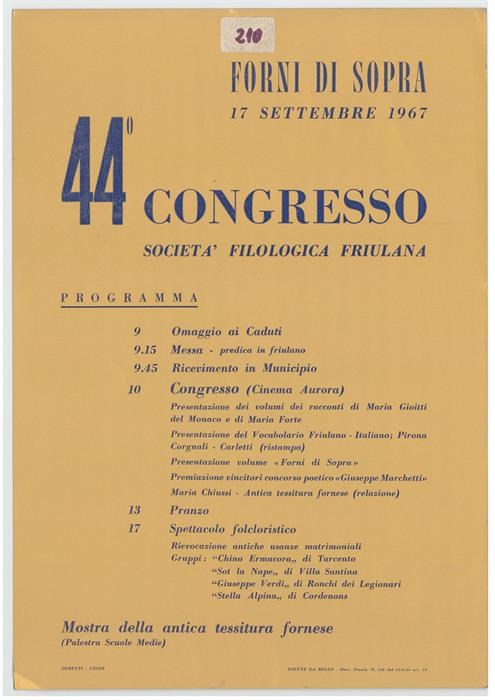44. Congresso della Società Filologica Friulana a Forni di Sopra