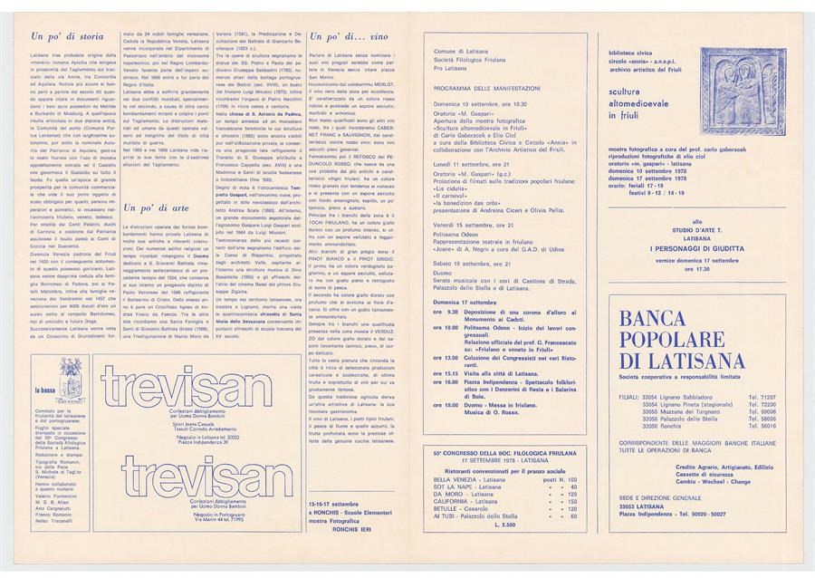 Pieghevole realizzato in occasione del 55. Congresso annuale della Società Filologica Friulana tenutosi ad Latisana