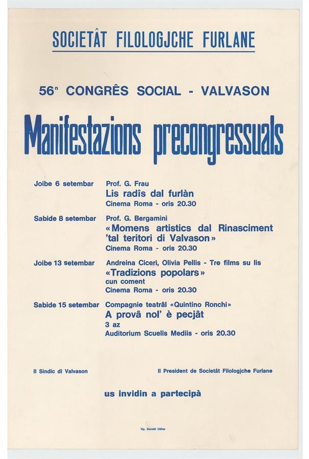 Programma degli eventi in occasione del 56. Congresso annuale della Società Filologica Friulana tenutosi a Valvasone