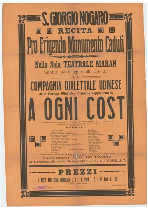 Recita pro erigendo monumento caduti a S. Giorgio di Nogaro nella sala teatrale Maran