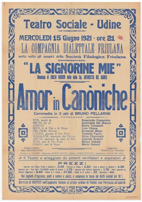 Spettacoli teatrali della Compagnia Dialettale friulana nel Teatro Sociale di Udine