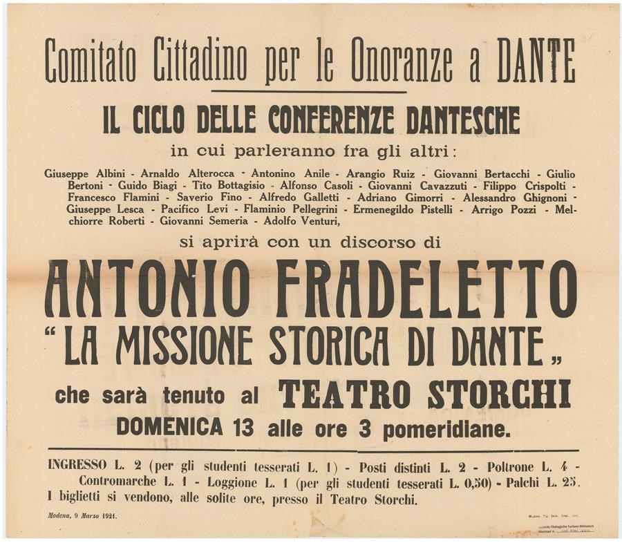 Conferenze dantesche al Teatro Storchi organizzate dal Comitato Cittadino per le Onoranze a Dante
