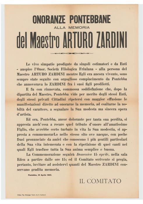 Onoranze pontebbane alla memoria del Maestro Arturo Zardini