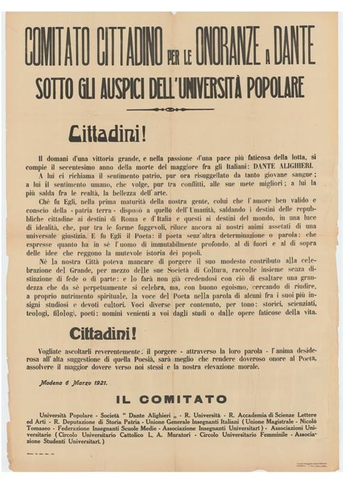 Comitato cittadino per le onoranze a Dante sotto gli auspici dell'Università popolare