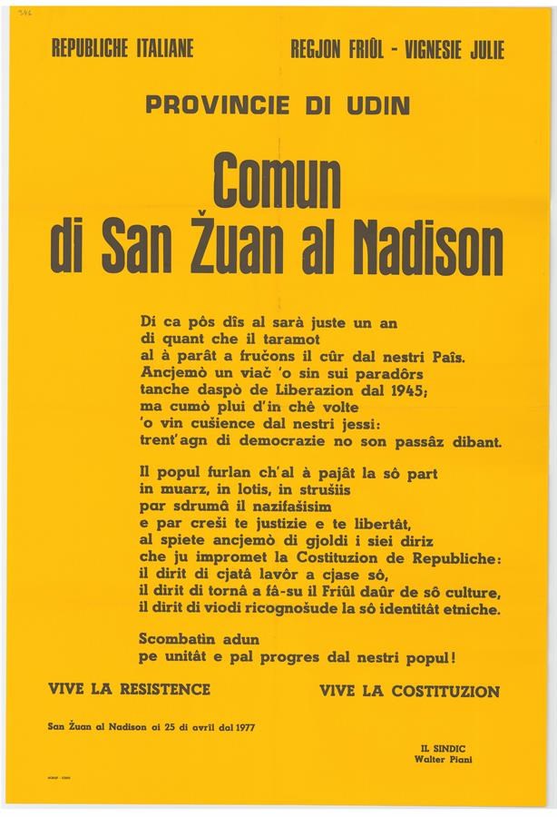Comun di San Zuan al Nadison. Vive la Resistence, vive la Costituzion
