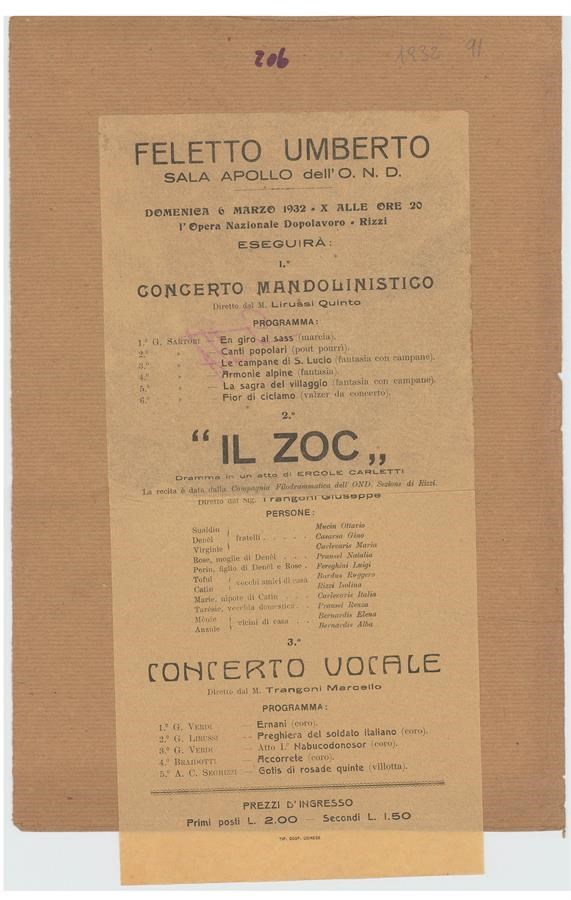 Concerto mandolinistico; Il zoc di Ercole Carletti; Concerto vocale