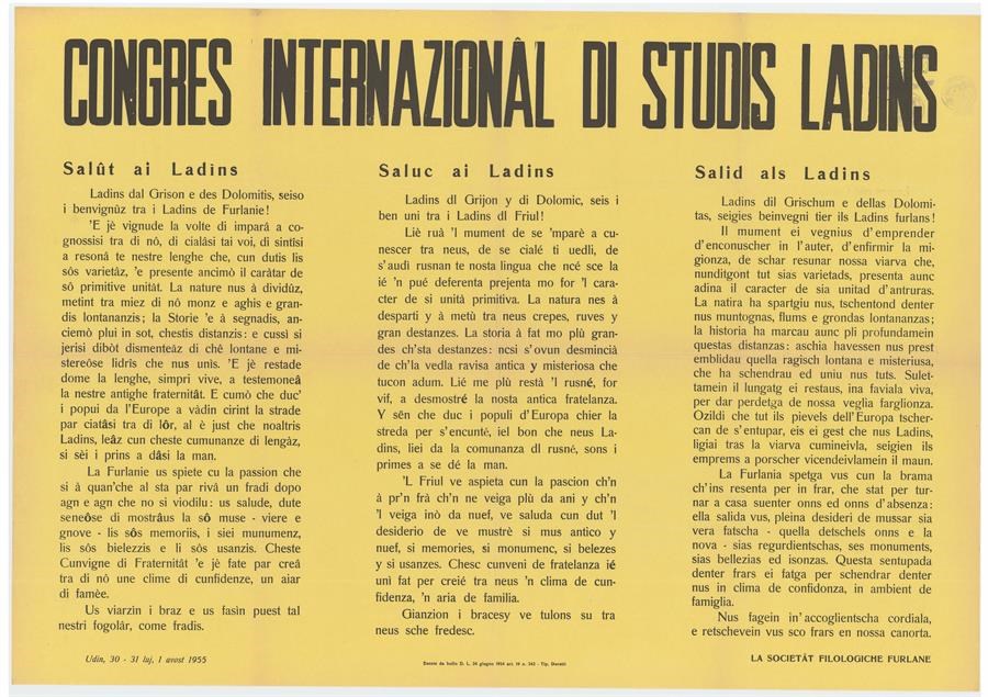 Discorso inaugurale del Congresso internazionale di studi ladini tenutosi nel 1955