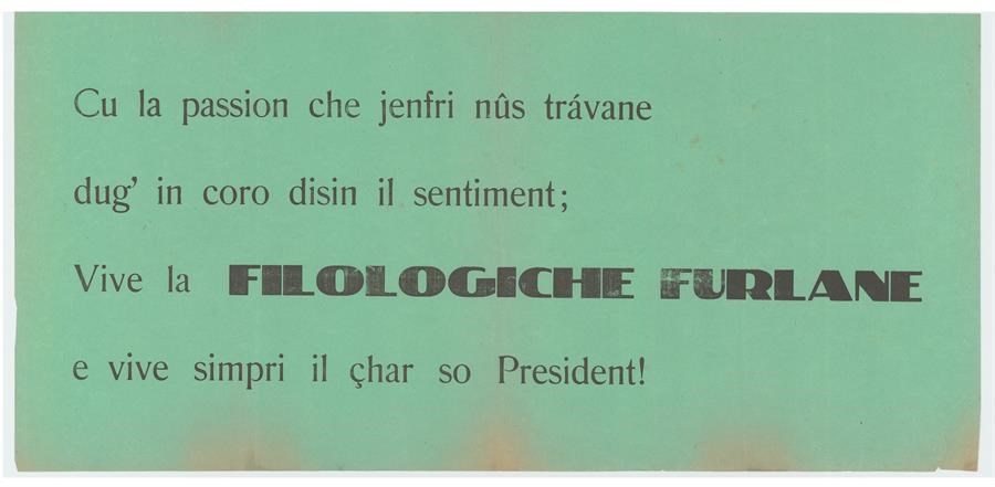 Cu la passion che jenfri nûs trávane dug' in coro disin il sentiment; vive la Filologiche Furlane e vive simpri il çhar so President!