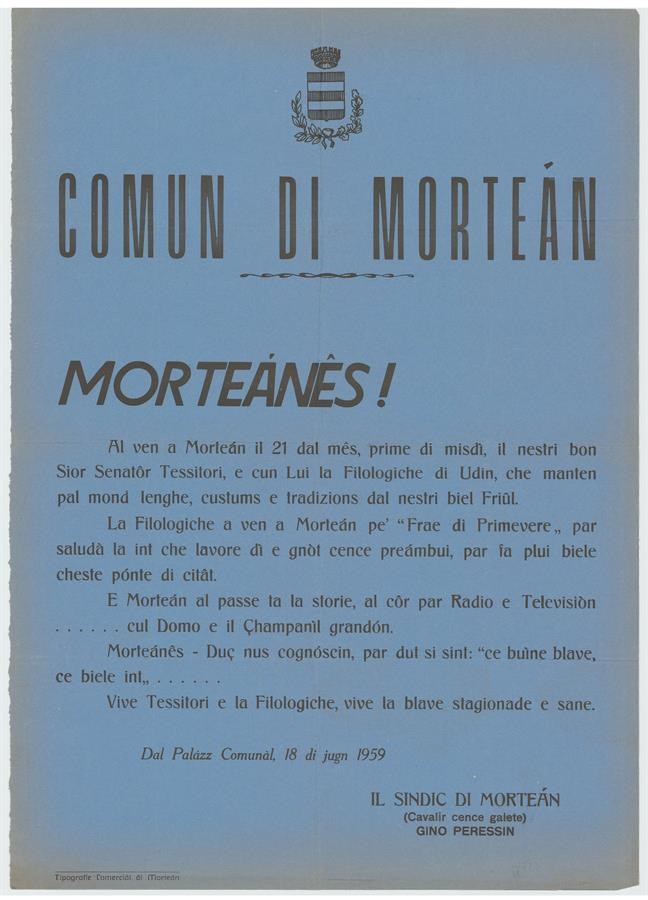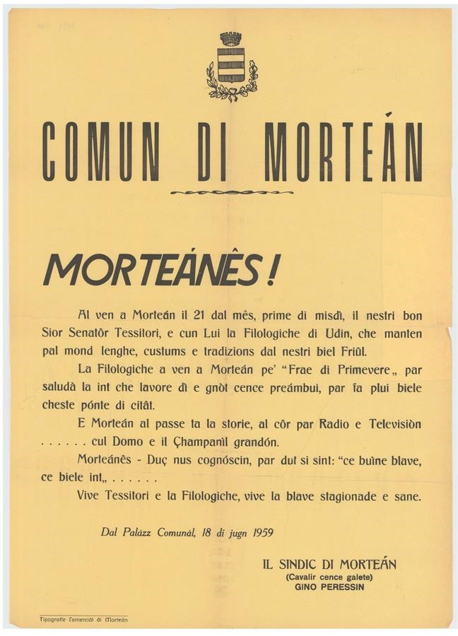 Discorso del Sindaco di Mortegliano ai suoi concittadini in occasione della "Frae di primavere" organizzata dalla Società Filologica Friulana