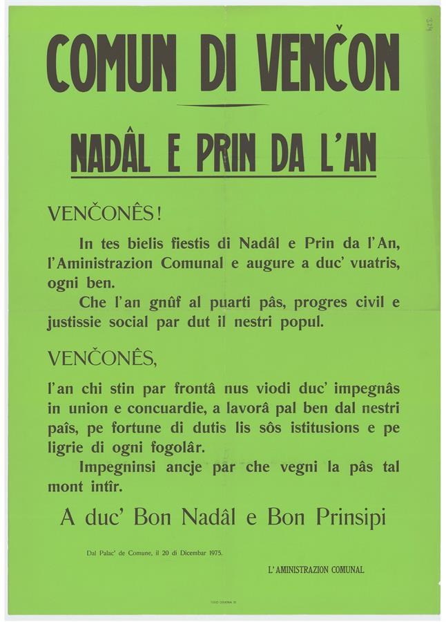 Comun di Vençon, Nadâl e prin da l'an