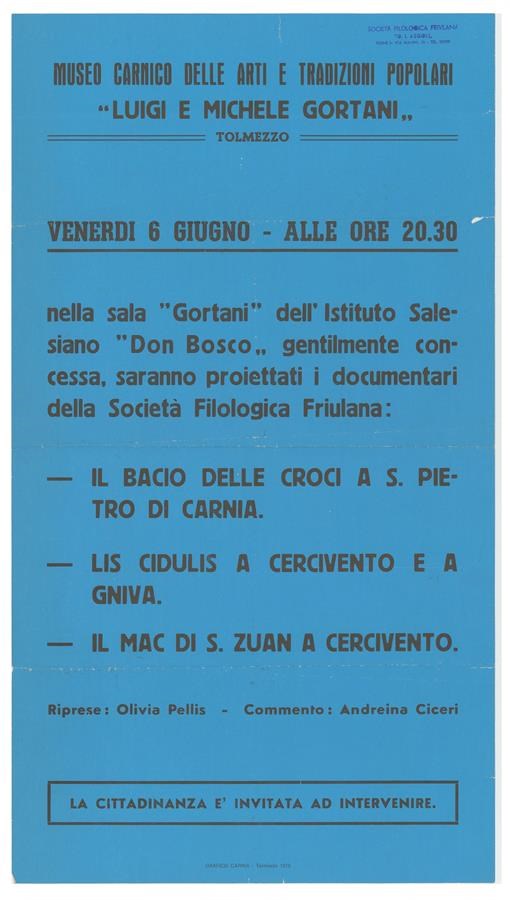 Il bacio delle croci a S. Pietro di Carnia; Lis cidulis a Cercivento e a Gniva; Il mac di S. Zuan a Cercivento