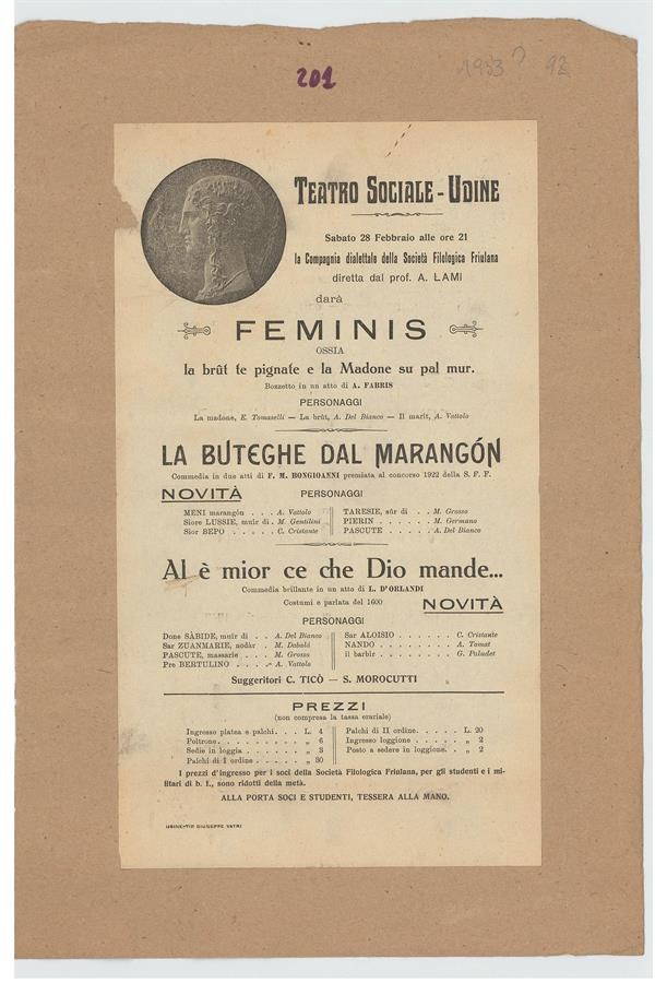 Spettacoli teatrali a cura della Compagnia dialettale della Società Filologica Friulana al Teatro Sociale di Udine