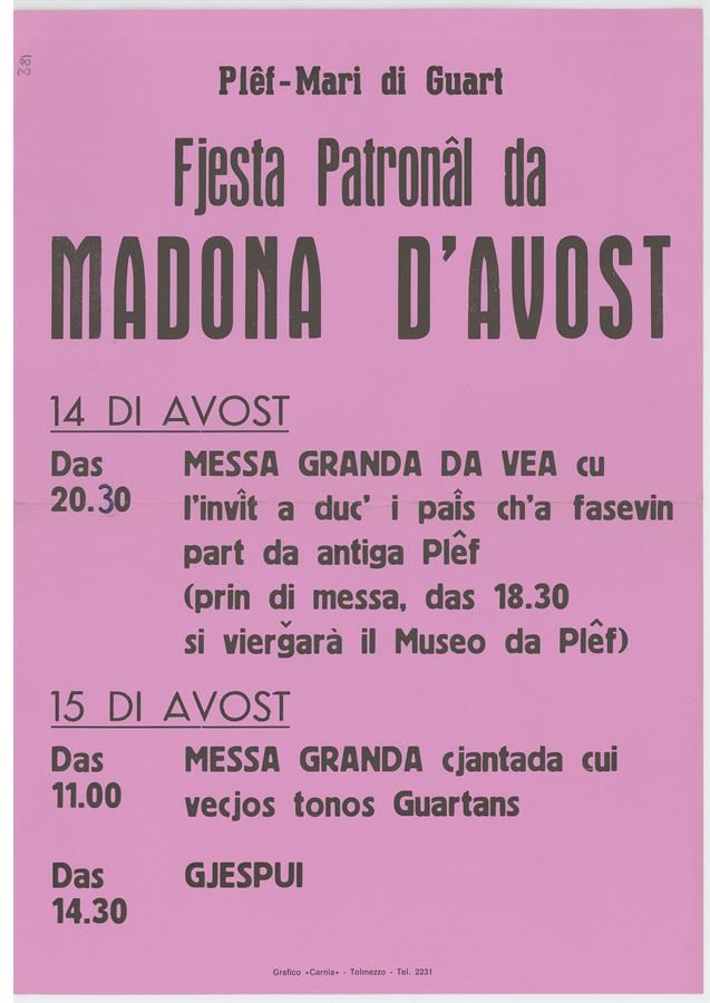 Fjesta Patronâl da Madona d'avost, Plêf - Mari di Guart
