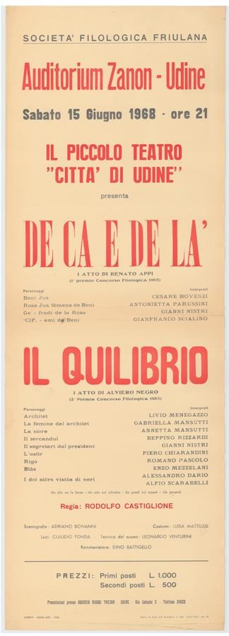 Il Piccolo Teatro città di Udine presenta De ca e de là di Renato Appi, Il quilibrio di Alviero Negro
