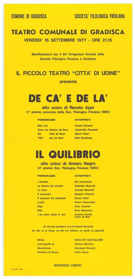 Spettacoli teatrali in occasione del 54. Congresso sociale della Società Filologica Friulana a Gradisca d'Isonzo