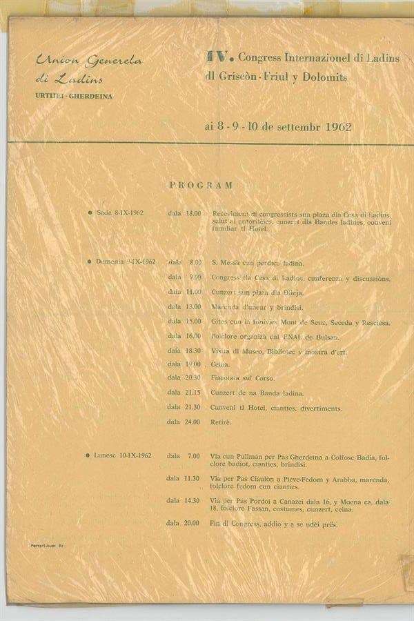 IV. Congress Internazionel di Ladins dl Griscòn - Friul y Dolomits ai 8-9-10 de settembr 1962, Union Generela di Ladins