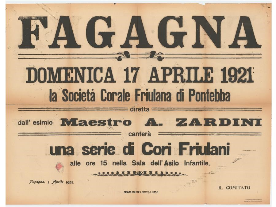 La Società Corale Friulana di Pontebba diretta dall'esimio Maestro A. Zardini canterà una serie di Cori Friulani