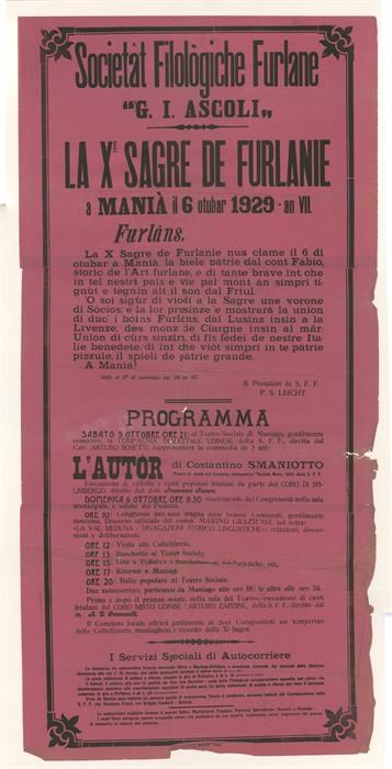 La Xe Sagre de Furlanie a Manià il 6 otubar 1929 an VII