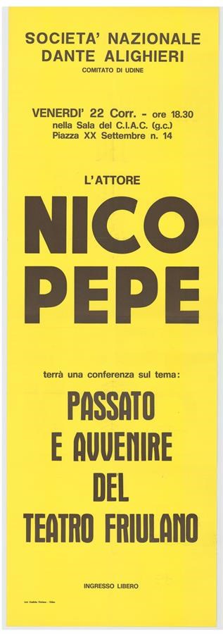 L'attore Nico Pepe terrà una conferenza sul tema: Passato e avvenire del teatro friulano