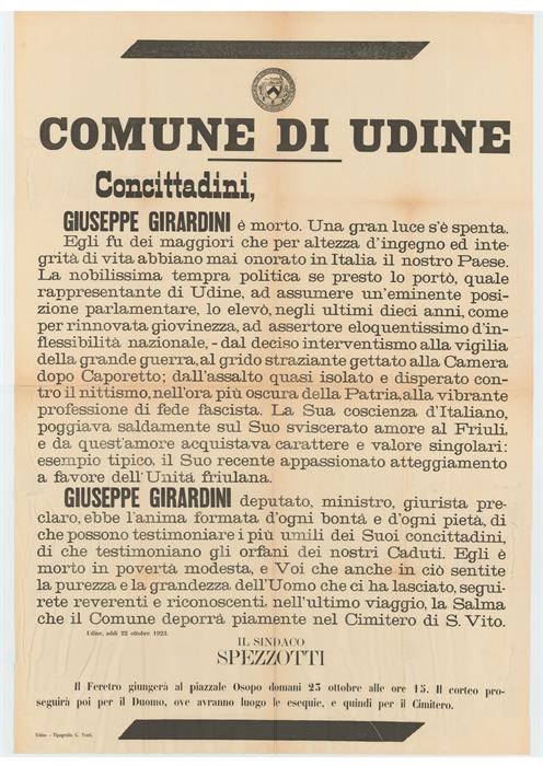 Lettera ai concittadini del sindaco Spezzotti per la morte di Giuseppe Girardini