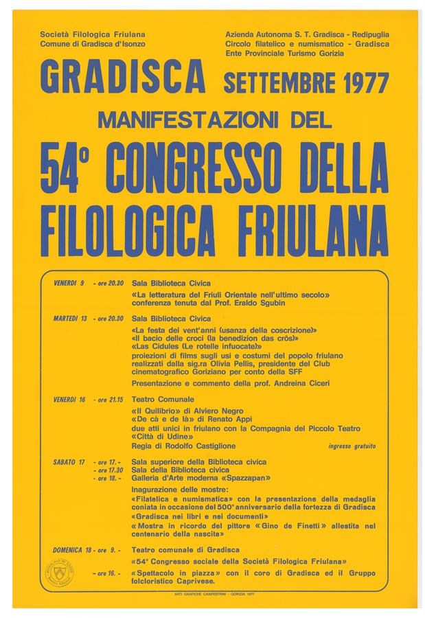 Programma del 54. Congresso annuale della Società Filologica Friulana tenutosi a Gradisca d'Isonzo