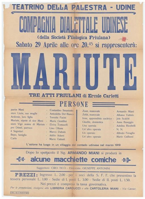 Spettacolo teatrale a cura della Compagnia dialettale udinese nel Teatrino della Palestra, Udine
