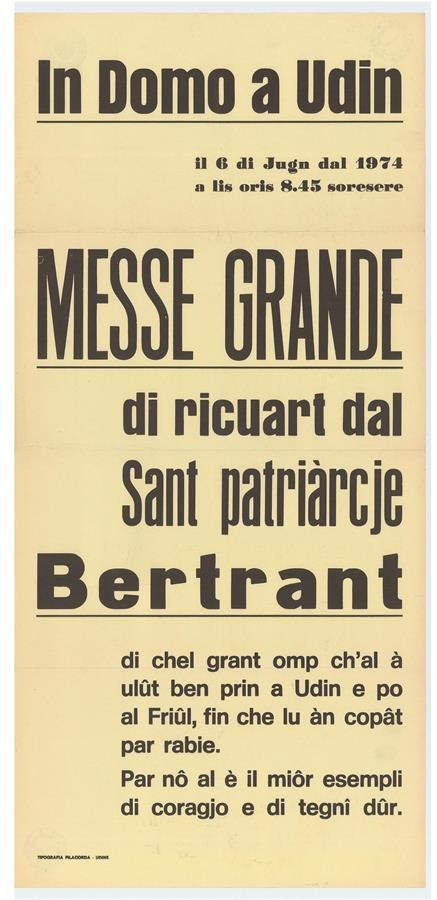 Messe grande di ricuart dal Sant patriĆ rcje Bertrant in Domo a Udin