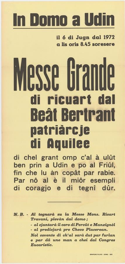 Messe grande di ricuart dal Sant patriĆ rcje Bertrant in Domo a Udin