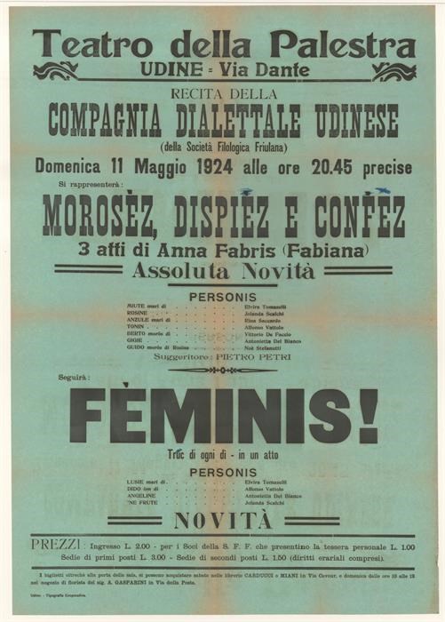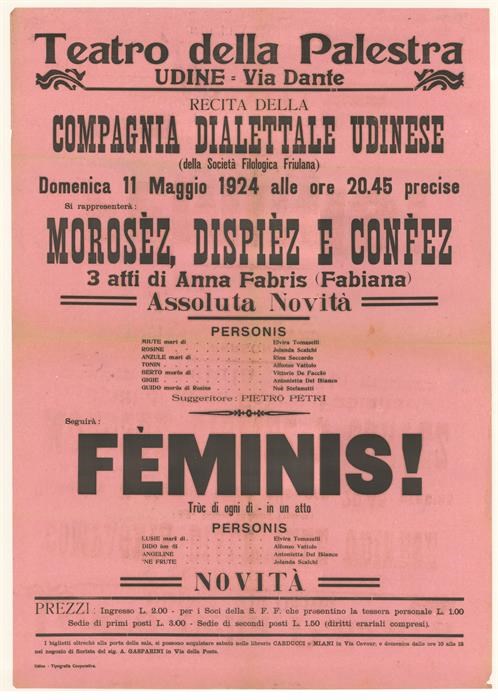 Spettacoli teatrali a cura della Compagnia dialettale udinese nel Teatro della Palestra, Udine Via Dante