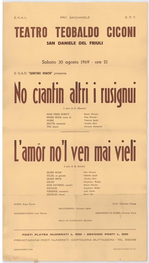 No cjantin altri i rusignui di G. Marioni; L'amôr no'l ven mai vieli di Q. Ronchi
