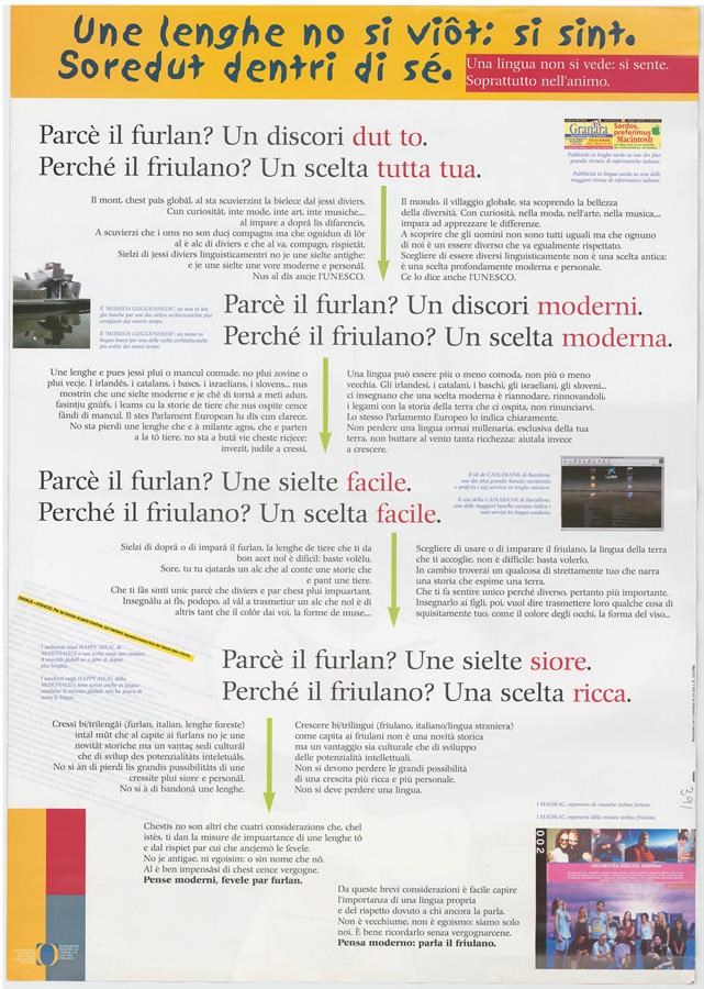 Une lenghe no si viôt: si sint. Soredut dentri di sé