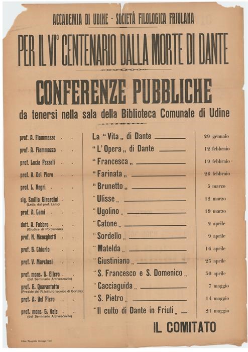 Conferenze pubbliche su Dante Alighieri nella biblioteca comunale di Udine