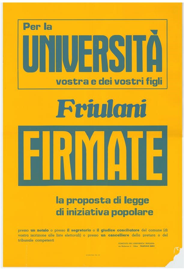 Per la università vostra e dei vostri figli, friulani firmate la proposta di legge di iniziativa popolare