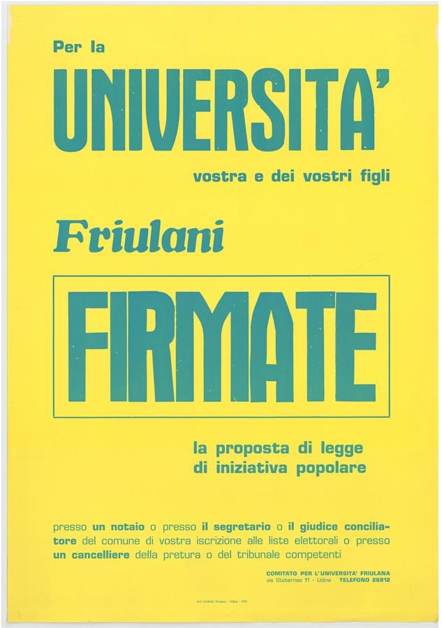 Per la università vostra e dei vostri figli, friulani firmate la proposta di legge di iniziativa popolare