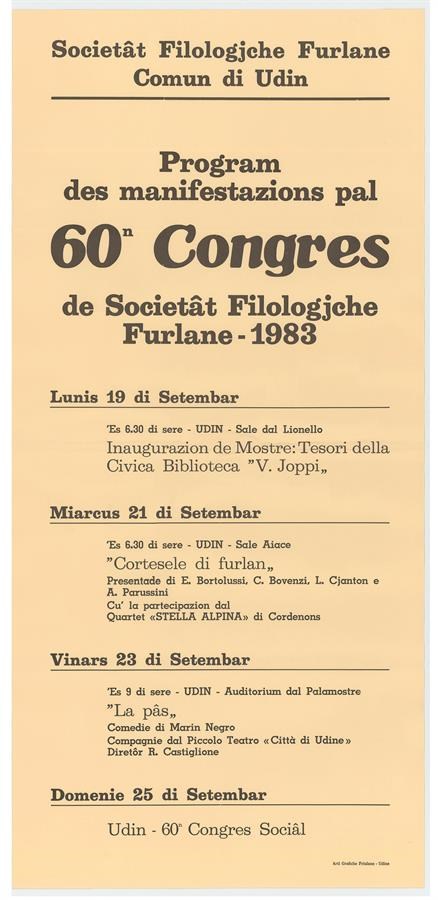 Program des manifestazions pal 60n Congres de Societât Filologjche Furlane 1983