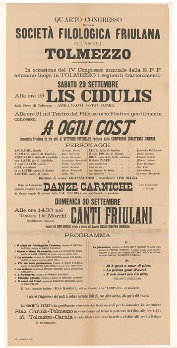 Programma del quarto Congresso annuale della Società Filologica Friulana a Tolmezzo