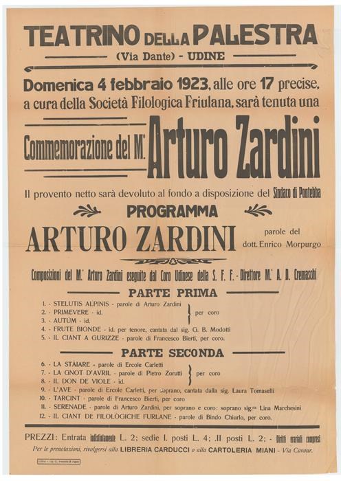 Programma in occasione della commemorazione di Arturo Zardini